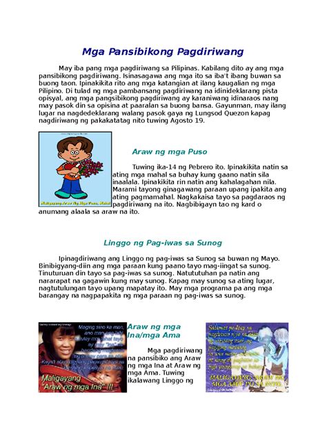 Ang Pansibikong Pagdiriwang ay isa sa mga pinakamasayang pagtitipon sa buong Pilipinas. Sa isang makabuluhang okasyong ito, maraming tao ang nagmumula sa iba't ibang panig ng bansa upang magdiwang at magbigay-pugay sa mga nakaraang kaganapan. Hindi lang ito simpleng pagdiriwang, ito ay isang pagpapakita ng pagkakaisa at pagmamalaki bilang isang sambayanang Pilipino. Mula sa parada ng mga makukulay na kasuotan, mga sayaw at paligsahan, hanggang sa mga espesyal na handaan at palaro, tiyak na mapapasaya ka sa pagdalo sa ganitong pagtitipon. Sa kasalukuyan, dahil sa pandemya, kailangan nating manatiling ligtas at sundin ang mga panuntunan, subalit hindi ito hadlang upang maipagpatuloy ang tradisyonal na Pansibikong Pagdiriwang. Sa halip, ito ay magbibigay daan para sa mas malawak na partisipasyon at pagdalo ng mga tao mula sa iba't ibang panig ng mundo, gamit ang teknolohiya. Kaya ano pa ang hinihintay mo? Sumali na sa Pansibikong Pagdiriwang at magsama-sama tayo sa pagdiriwang ng ating kultura at kasaysayan!